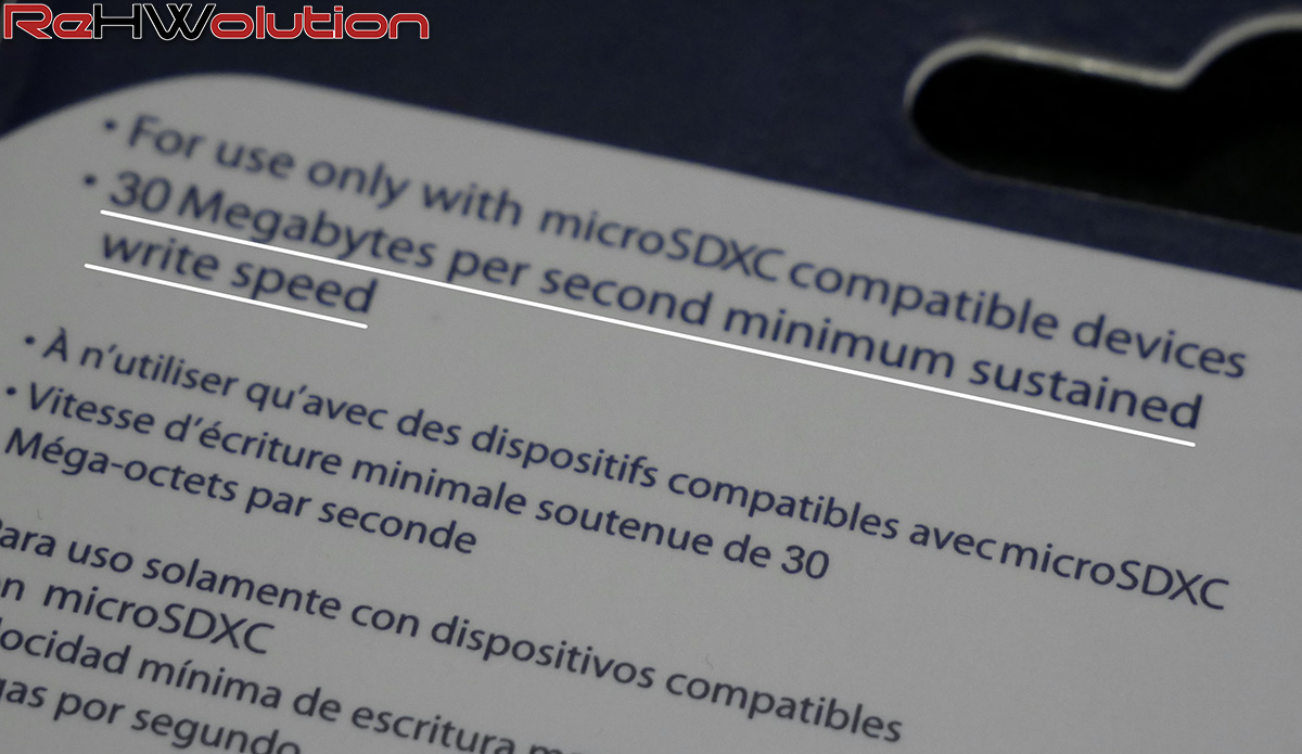 Pertanto, dovrete fare affidamento a ciò che vi diremo, e cioè che si tratta di una classica MicroSD (di tipo MicroSDXC) dalla capienza di 256GB (la massima capienza per questo tipo di memory card finora realizzata) e dalle velocità dichiarate dall’azienda di circa 90MB/s in lettura e 30MB/s in scrittura, grazie alla certificazione UHS-I U3 (piccolo tip: per ottenere la velocità minima garantita di scrittura basta moltiplicare il numero dopo la U, in questo caso 3, per il numero romano dopo UHS, in questo caso 1, per 10. 3x1x10 > 30MB/s).