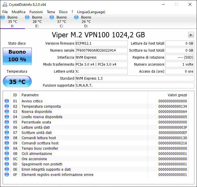 Il drive è garantito per 3 anni, ed è dichiarata una longevità di 1665 TBW (Terabytes Written).