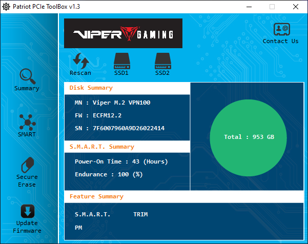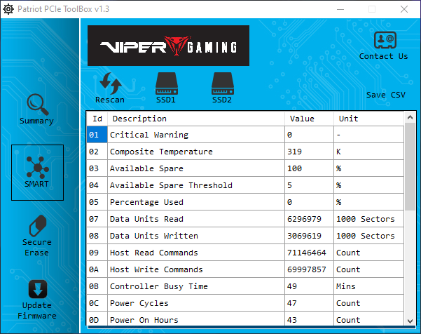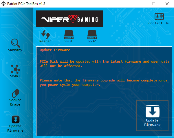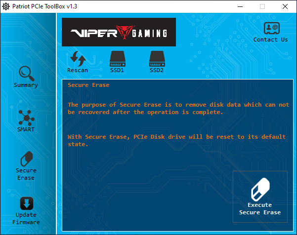 Il software in dotazione è abbastanza scarno e spartano, e vi permetterà di eseguire le operazioni base come check dello status, dello S.M.A.R.T., l’update del firmware e il Secure Erase per l’eliminazione dei dati in tutta sicurezza e soprattutto permanenza: