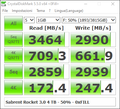 Prestazioni invariate occupando ben 2 dei 4 TB disponibili sul Rocket 3.0. Un risultato decisamente sorprendente.
