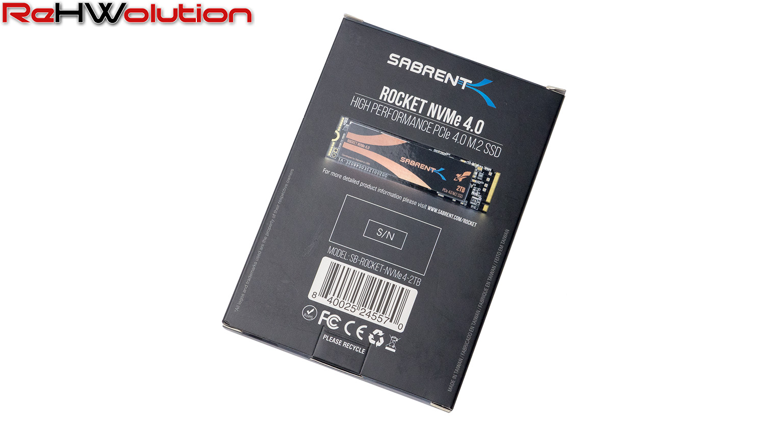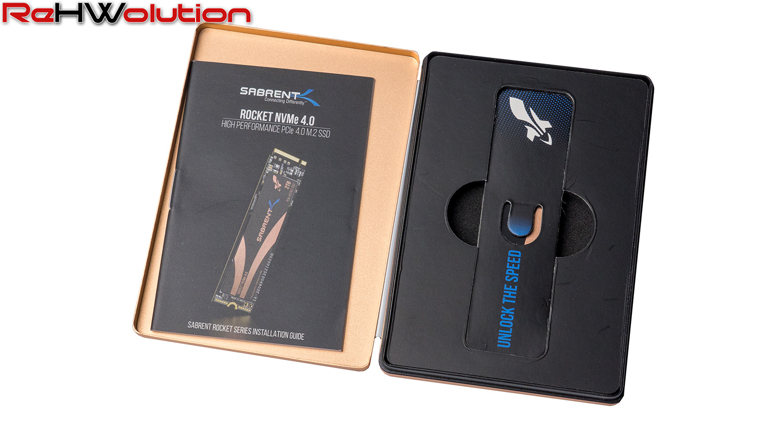 Come riscontrato con i Rocket Q e Rocket 3.0, anche con il Sabrent Rocket 4.0 il drive è riposto in un astuccio metallico con un inserto in spugna che lo tiene al sicuro durante la spedizione. Il drive presenta il tipico design delle soluzioni basate su PCIe 4.0, con un PCB nero che fa da contorno ed uno sticker in rame che fa da heatspreader per una più uniforme distribuzione del calore generato da controller, NAND e cache DRAM.