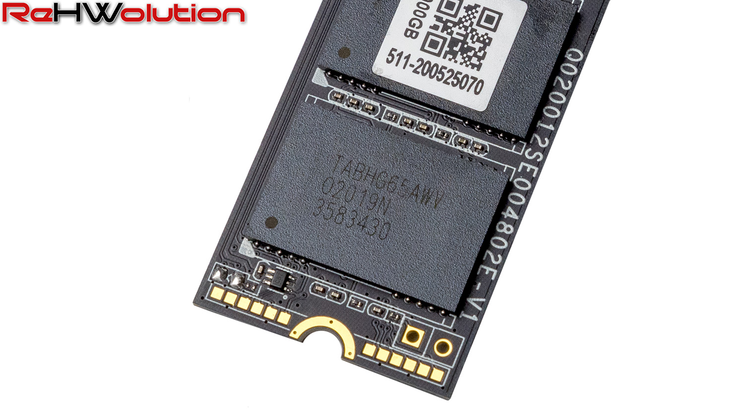 Sono presenti un totale di 4 NAND, ognuna da 4 Terabit (512 GB), per un totale di 2000 GB disponibili e 48 GB per overprovisioning (una tecnica che consente di aumentare leggermente la longevità del drive riservando parte dello spazio disponibile).
