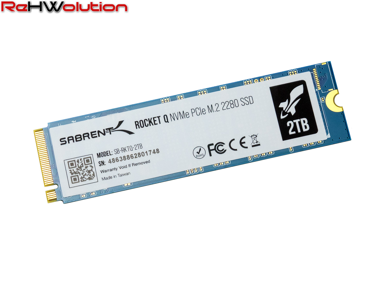 Il Sabrent Rocket Q è ben protetto all’interno dell’astuccio metallico con inserti in spugna, cosa che si è rivelata utilissima durante la spedizione del nostro sample, che presentava ammaccature sul cartone ma non sull’astuccio interno. Il drive è single side, con 4 NAND montate nella parte superiore ed uno sticker in rame che funge da heatspreader.