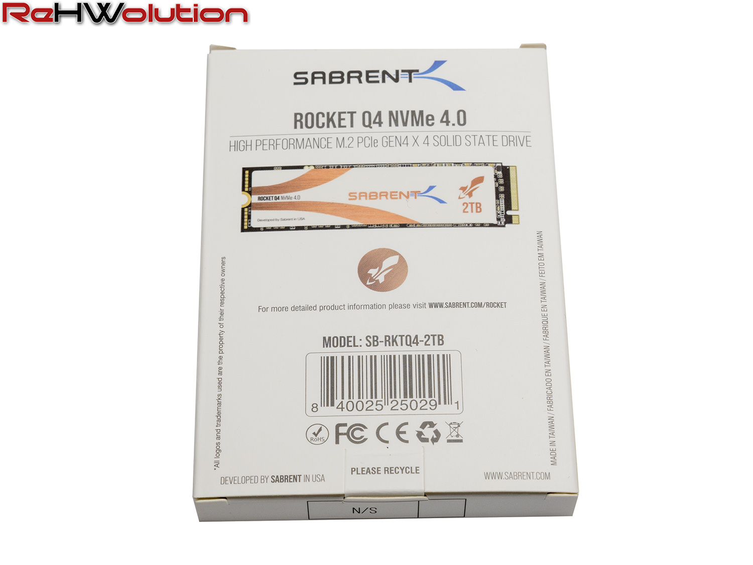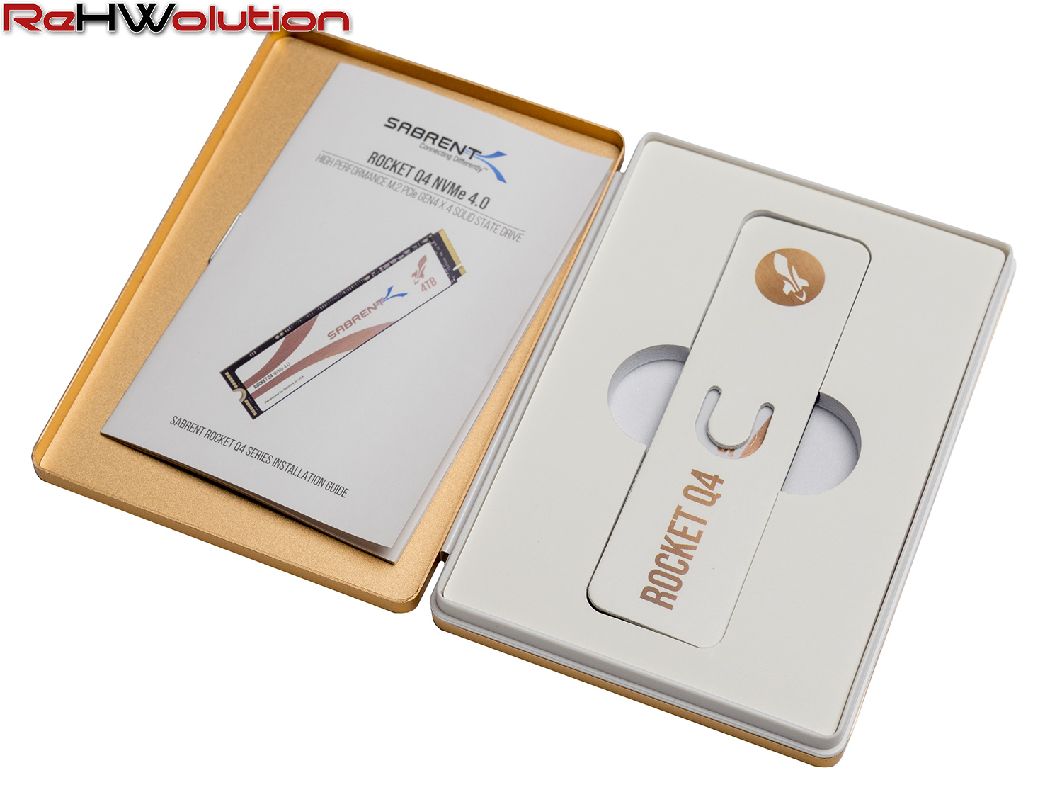 Ecco una serie di immagini del package e dell’SSD: i Sabrent Rocket presentano il miglior packaging sul mercato, con un involucro di metallo che protegge al meglio l’SSD che è alloggiato in un inserto in spugna all’interno: