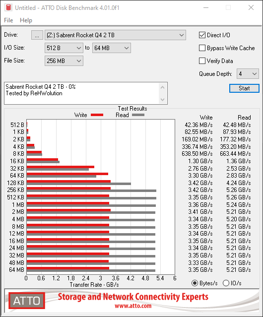 Da quando ATTO è stato aggiornato alla major release 4.00, è difficile ottenere nel software i valori dichiarati dai produttori, complice il fatto che la versione precedente era troppo teorico e poco indice delle reali prestazioni di un drive.