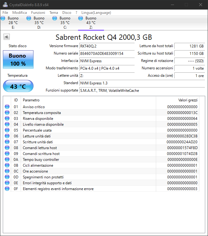 Il drive dispone di connessione M.2 NVMe, ed è quindi compatibile con gli slot M.2 key M. Visto che utilizza lo standard PCIe 4.0, dovrete dotarvi di una scheda madre compatibile ed un processore compatibile (X570/B550 per AMD, Z490 e CPU 11th Gen per Intel) per sfruttare appieno le prestazioni del Rocket Q4. Se utilizzerete una piattaforma PCIe 3.0, sarete limitati a 3300 MB/s in lettura e 3000 MB/s in scrittura.