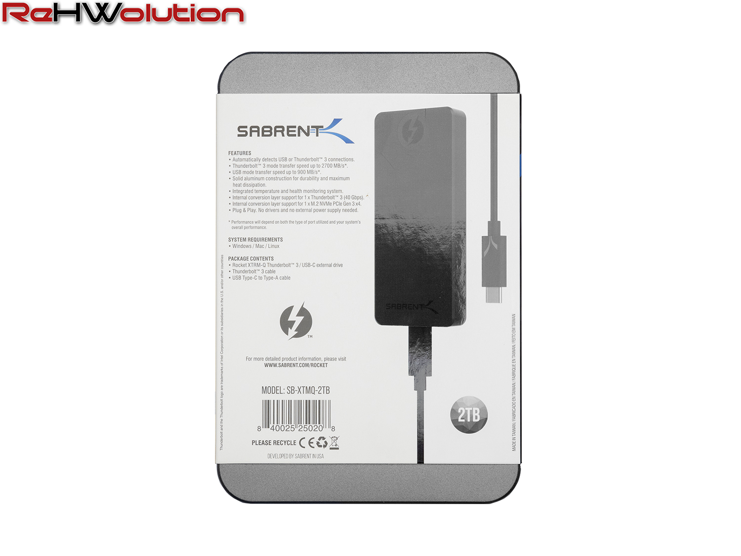 Con un package che ricorda tanto quello utilizzato per gli SSD NVMe interni e anche del Rocket Nano precedentemente recensito (QUI la review del modello da 2 TB) in alluminio, notiamo come sempre un’anteprima visiva del drive su entrambe le facce anteriore e posteriore, con il contenuto della confezione ed i requisiti di sistema, insieme ad una serie di caratteristiche uniche del prodotto.