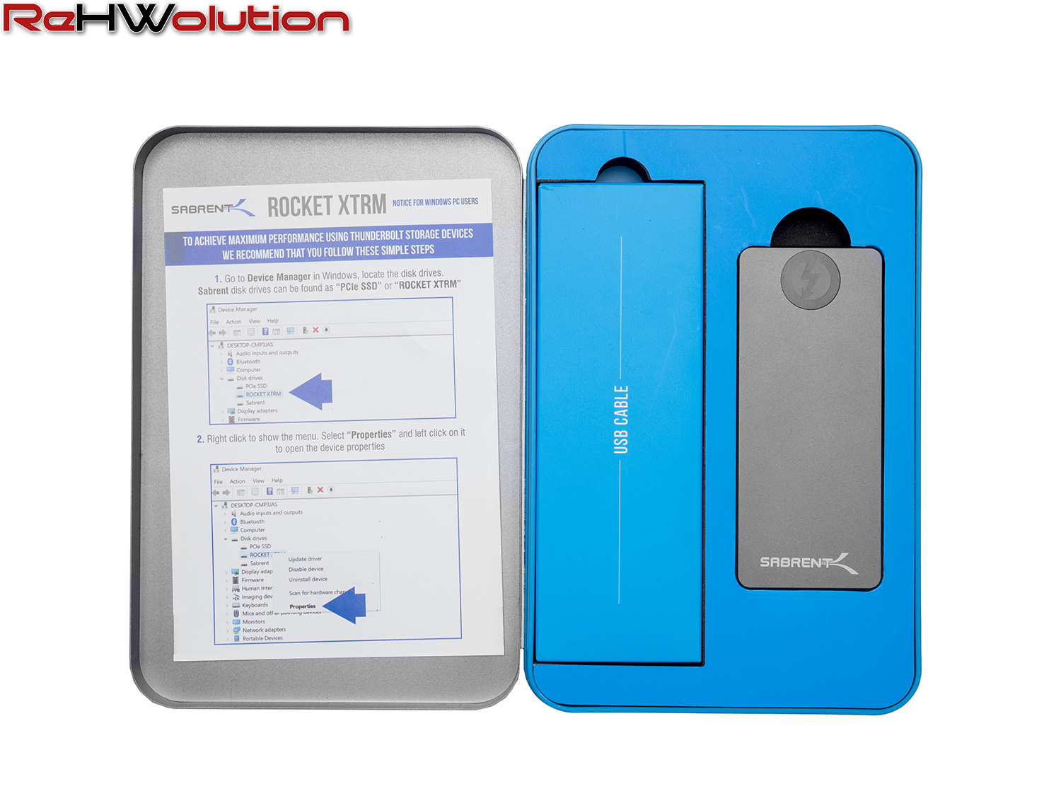 Ecco quindi il drive, con uno chassis in lega d’alluminio ed il cavo Thunderbolt 3 incluso nella confezione. A quanto pare il nostro sample non include un cavo tradizionale USB Type-A a Type-C, ma nella versione che acquisterete presso Amazon o i rivenditori ufficiali sarà presente anch’esso: