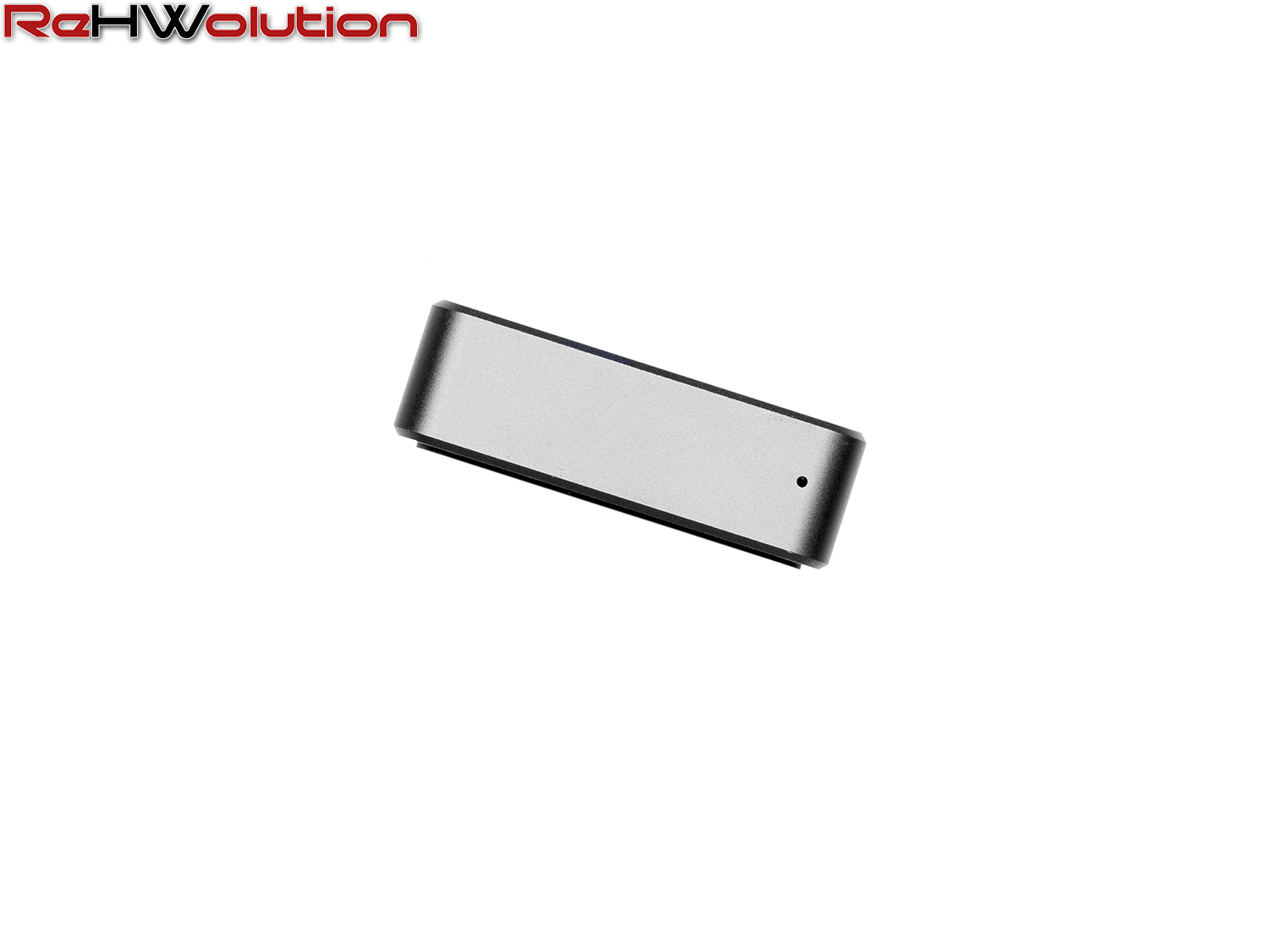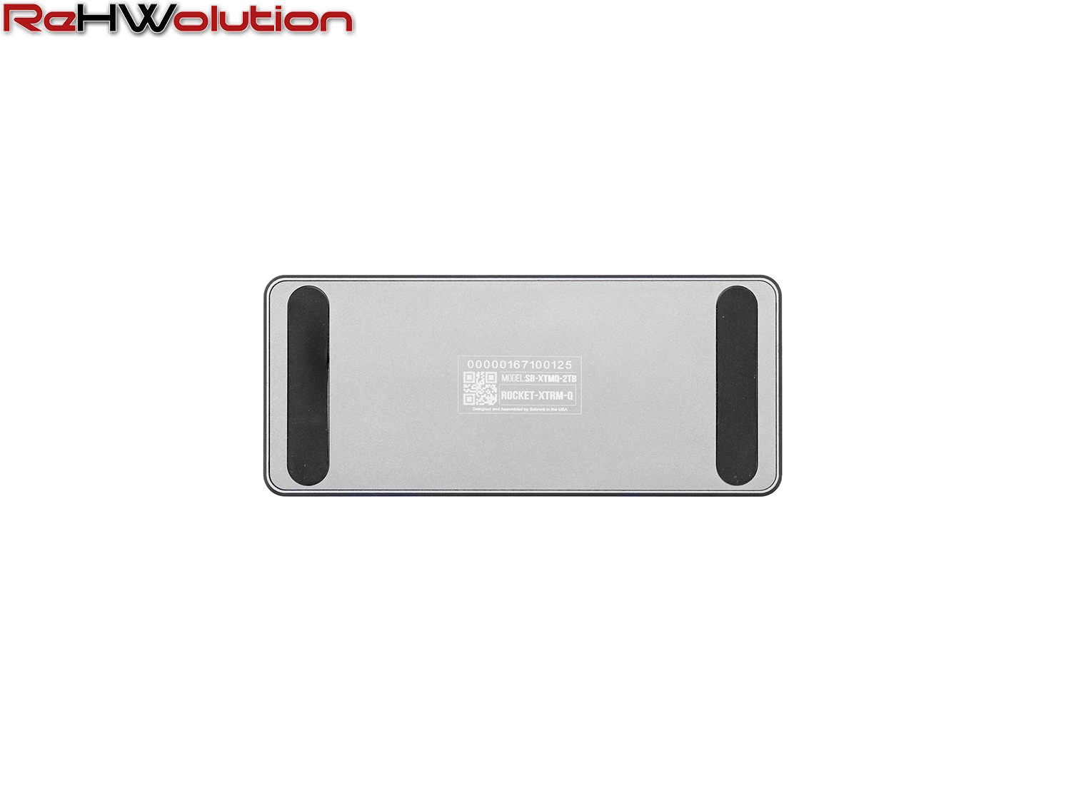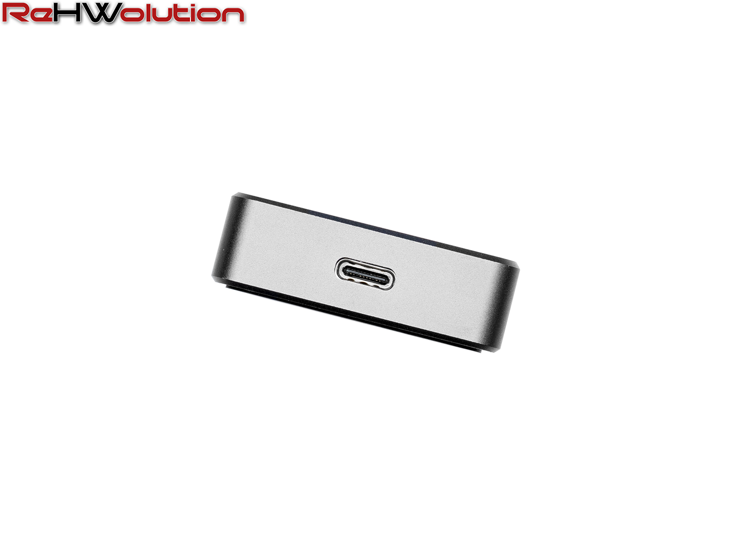 Nella parte inferiore del telaio notiamo due piedini in gomma che permettono al drive di non “scivolare” su alcuna superficie, mentre nella parte frontale troveremo il LED che notifica l’attività di lettura o scrittura sul drive, con la porta USB Type-C / Thunderbolt nella parte anteriore di esso.