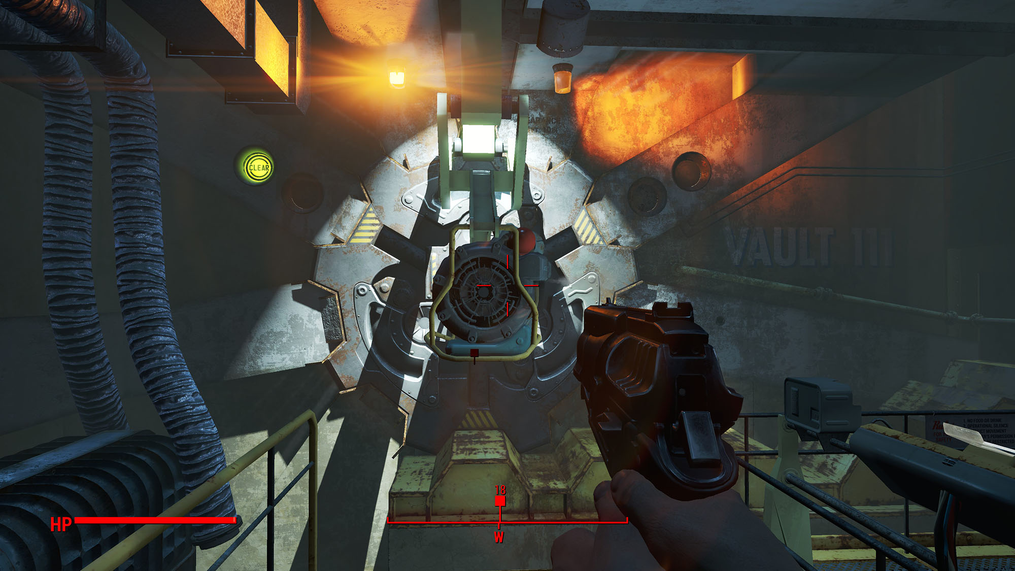 Ed ecco il primo momento epico del gioco: mentre saliamo sulla piattaforma che ci porta all’interno del Vault 111, un’esplosione nucleare in lontananza ci sorprende, e l’ascensore si abbassa sotto il livello terrestre appena in tempo per non essere travolti dall’ondata di energia sprigionata dall’esplosione nucleare. Ancora ordinatamente, veniamo indirizzati a delle strane capsule dove ci fanno accomodare. Nostra moglie (con nostro figlio, di pochi mesi) viene posta nella capsula di fronte a quella dove ci troviamo noi, e sentiamo voci ovattate parlare di un protocollo per l’ibernazione.