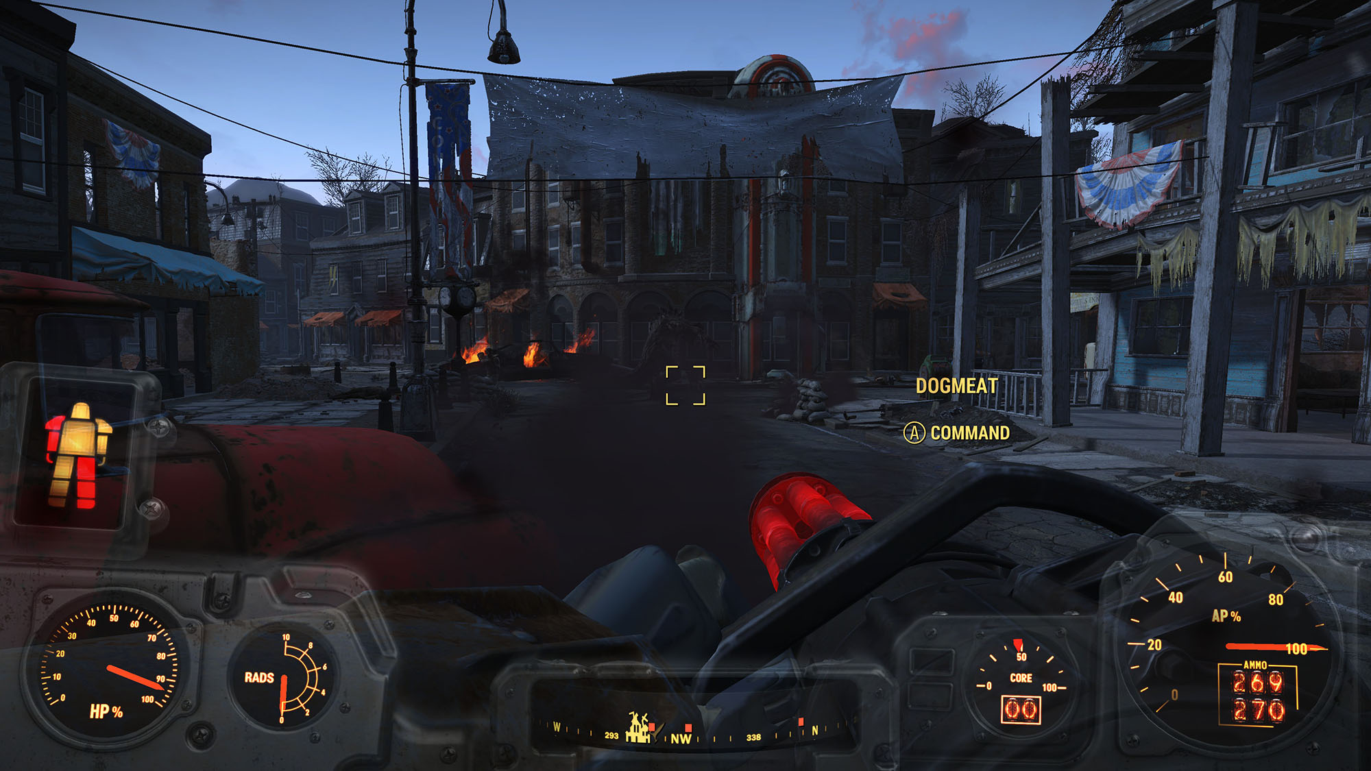 E questo è solo uno degli aspetti che, sul fronte tecnico, ci hanno deluso e anche parecchio. Un altro esempio lo rappresenta, ad esempio, Dogmeat, il nostro companion animale, fidato carroarmato a quattro zampe che ci aiuterà tantissimo nelle wasteland. Nonostante il gioco vanti il supporto ai GameWorks di NVIDIA, il pelo dell’animale è renderizzato davvero molto male, ricalcando di pari passo le modalità di rendering di Skyrim, un gioco che ha ormai 4 anni sulle spalle.