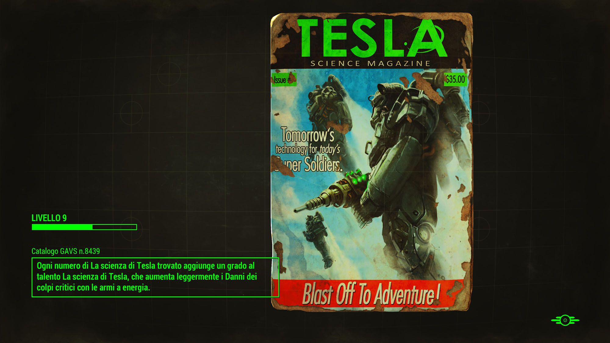 Esso, ci permetterà di avventurarci con maggiore sicurezza (o a mò di rambo) per il Commonwealth e aumenterà le probabilità di sopravvivenza (o la percentuale di danni inflitti, o le probabilità di droppare oggetti leggendari, o provviste) contro i nemici. Vi anticipo che con l’albero riempito (intorno al livello 220 circa) farete fuori un Deathclaw a pugni. Sempre che quest’ultimo non scappi prima, vedendovi.